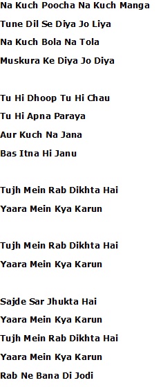 Lirik Tujh Mein Rab Dikhta Hai / Salah satu lagu popular dalam film tersebut adalah tujh mein rab dikhta hai.